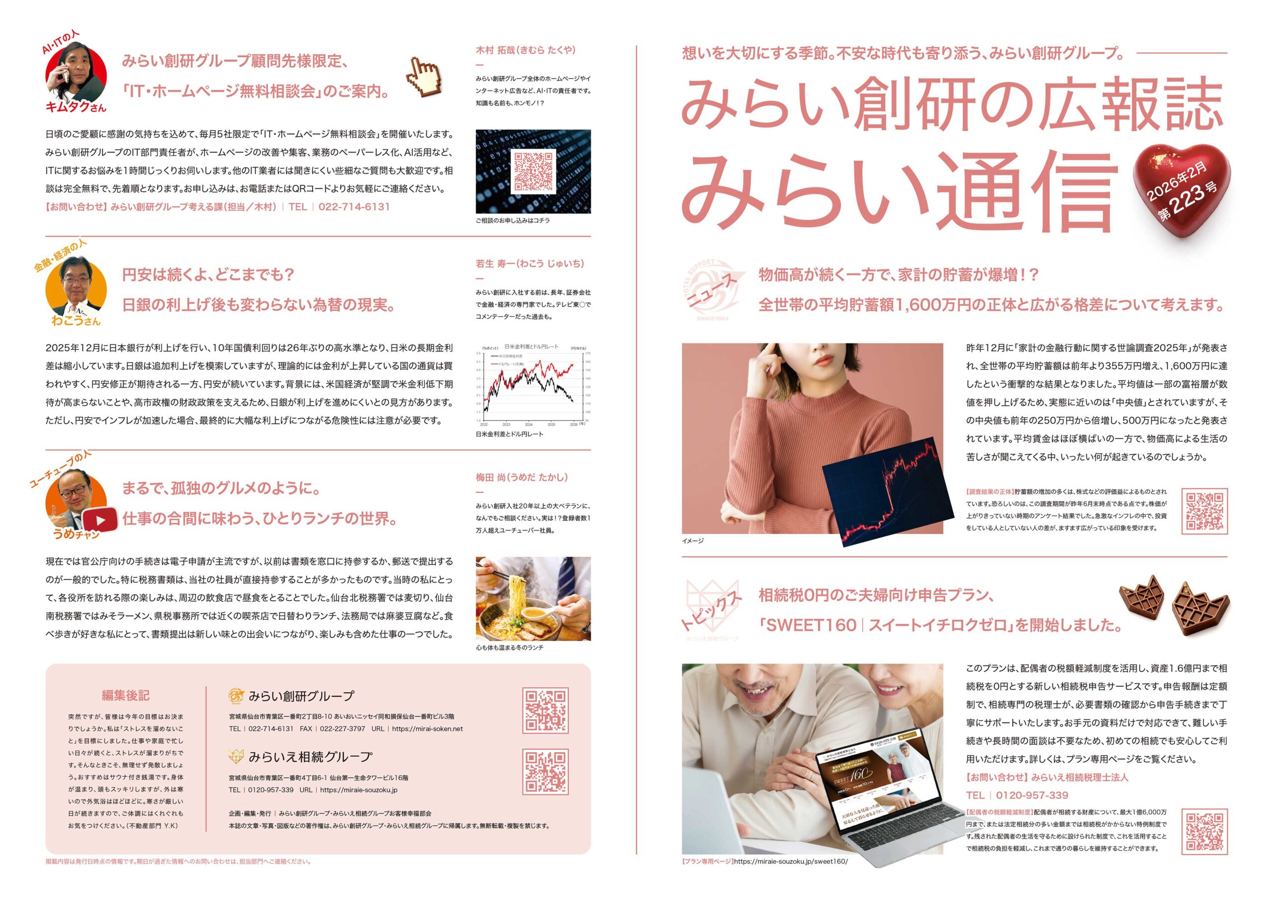 みらい創研グループの広報誌「みらい通信」223号を発行いたしました。